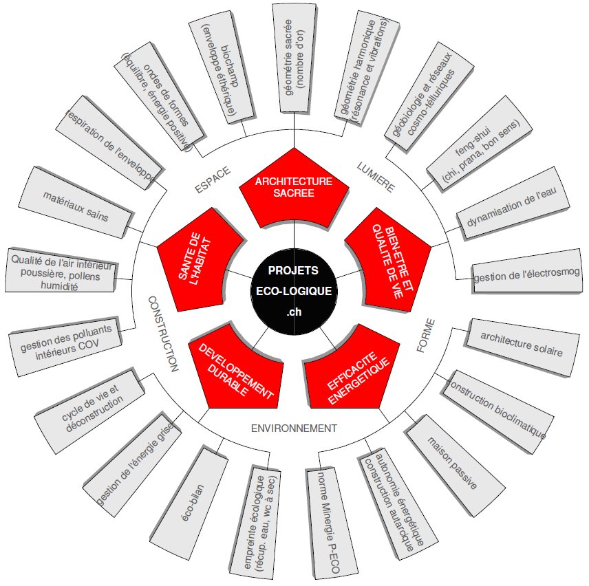 MATÉRIAUX SAINS ET GESTION DES POLLUANTS INTÉRIEURS: COV: Composés Organiques Volatiles tels que benzène, formaldéhyde, éther de glycol... Des meubles à la peinture en passant par les produits de nettoyage, nous ingérons régulièrement dans notre propre habitat quantité de poisons cancérigènes. Même dans notre monde industrialisé, il est possible d'employer des matériaux sains. Quelques exemples: peintures pour boiseries à base de yogourt, peinture à l'argile pour les murs, vernis cellulosique naturel ou imprégnation à l'huile de lin pour le bois, moquette naturelle en laine de mouton non traitée pour la chambre à coucher, etc. La qualité de l'air ambiant est nettement perceptible et contribue ainsi au bien-être et à la santé des occupants. |